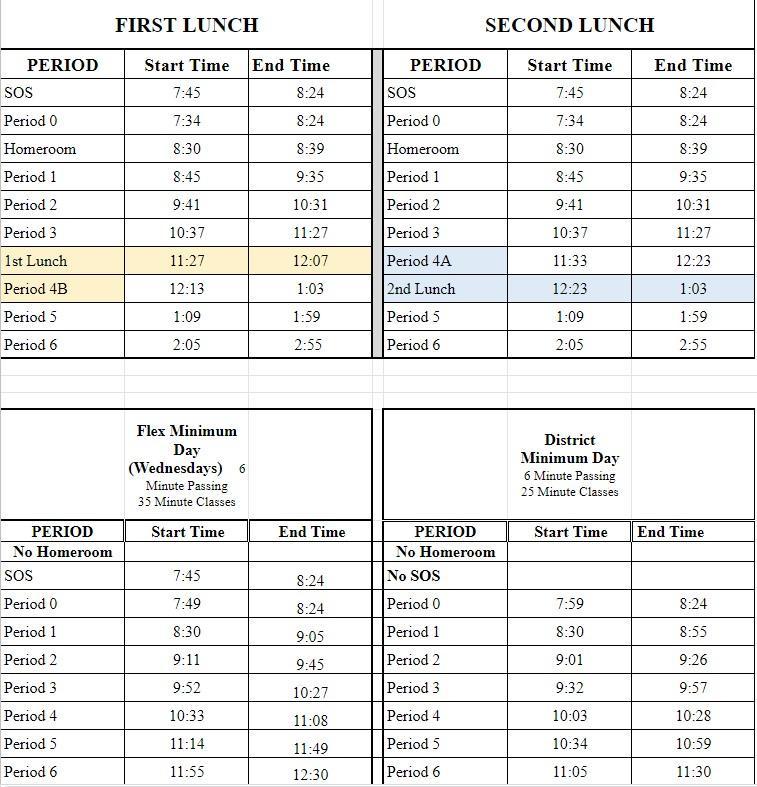 Student Resources Bell Schedule